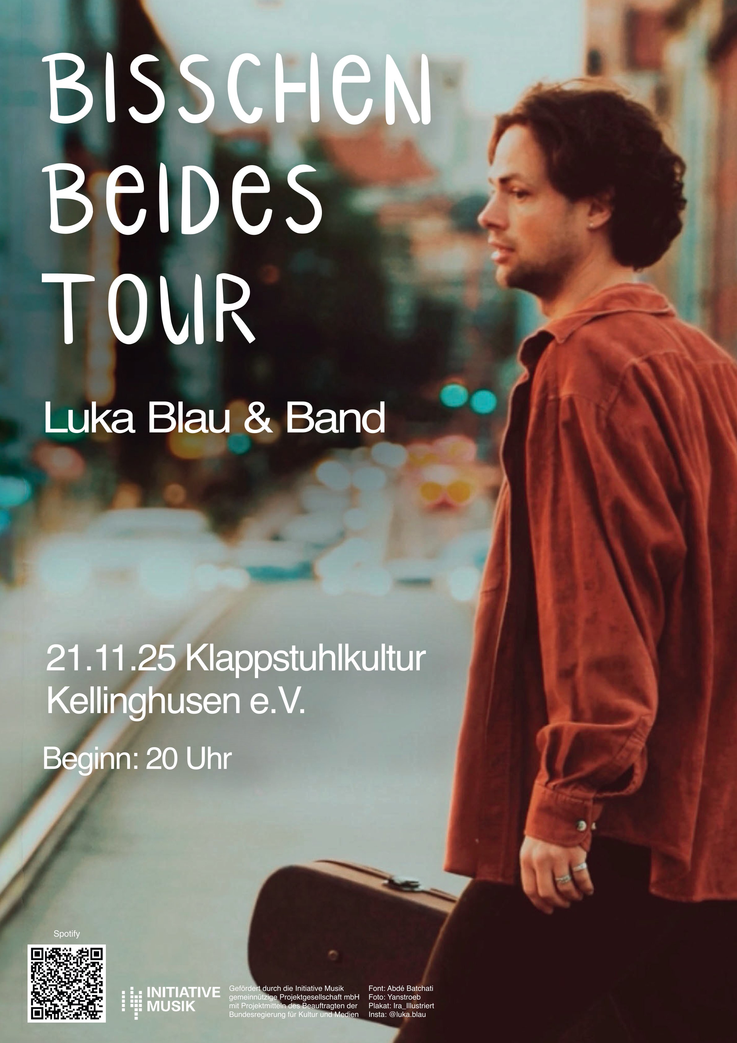 Die Antwort von Luka Blau heißt: „Bisschen Beides“. Auf seinem Debütalbum singt er „sanft, aber bestimmt und mit einem Hang zum Rauchigen“ (Süddeutsche Zeitung) über eben diese Ambivalenzen. Es geht um die Schnelllebigkeit der Zeit, um Egozentrik und Obdachlosigkeit. Es geht aber auch um die kleinen Wunder des Lebens und, na klar, um die Liebe. Nach dem Überraschungserfolg des Debütalbums folgt nun die „Bisschen Beides Tour“.